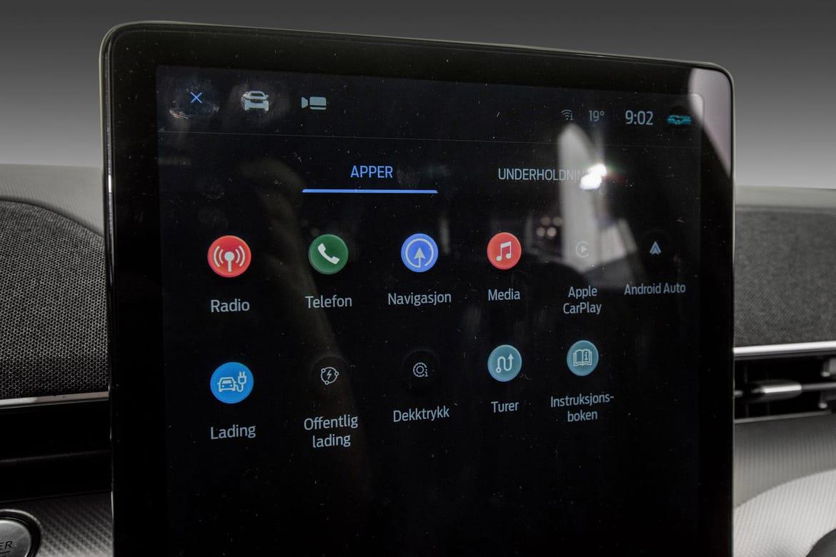 Moderne infotainmentsystem - stor skjerm og støtte for navigasjon, mediemuligheter og tilkobling