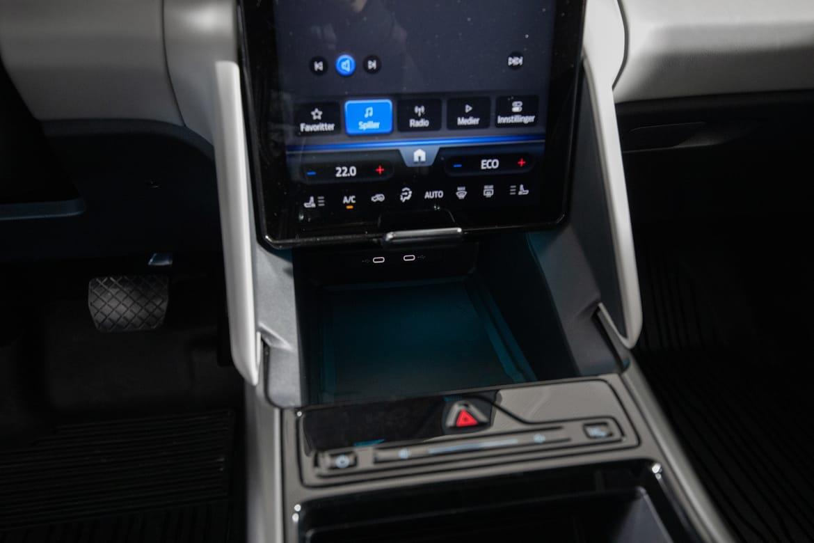 USB C uttak foran og bak