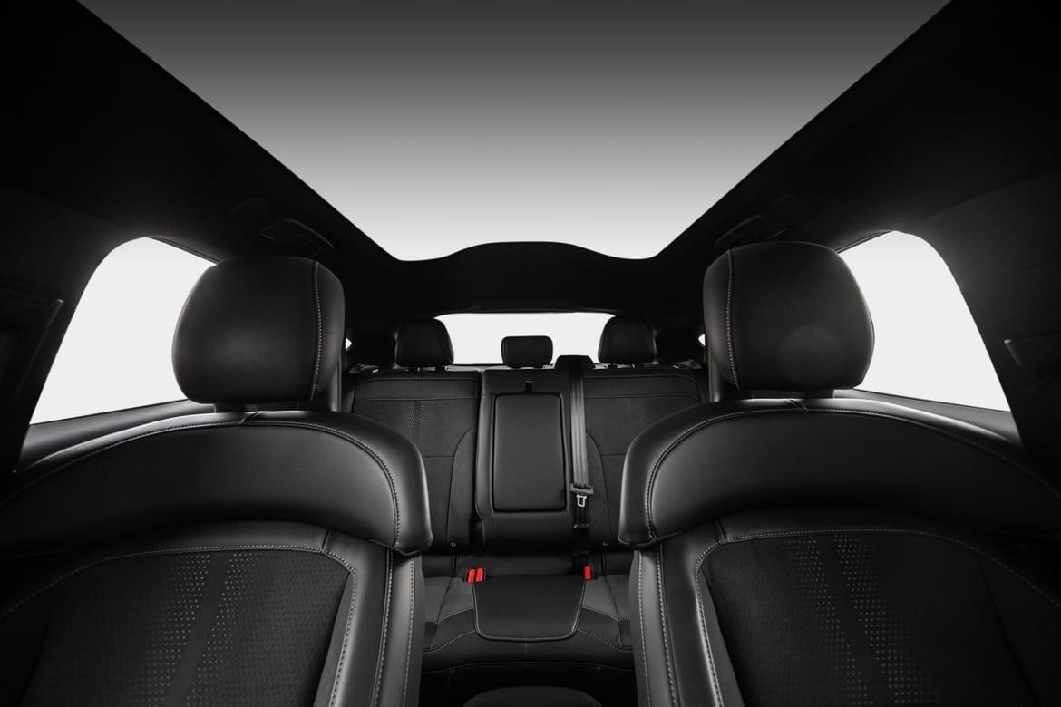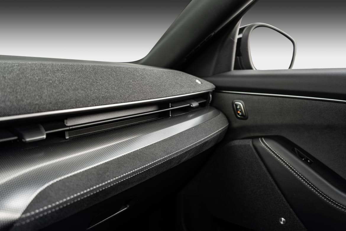 Alcatara/Semsket skinn gjennomgående i interiør.